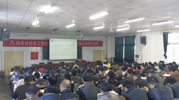 湖南省機(jī)電工程專業(yè)二級(jí)建造師繼續(xù)教育必修課培訓(xùn)在長(zhǎng)沙水電八局舉辦,湖南華億電子工程有限公司派張文亮、余崢、萬(wàn)科星參加。